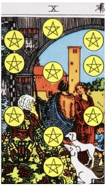 The Ten of Pentacles represents transcendent wealth; for you, your family, friends; for generations.